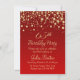 Goldene runde Konfetti mit rotem Gradienten 65. Geburtstagsparty Einladung