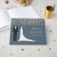 Golden Confetti, Tuxedo und Hochzeitskaros Set vor einem blaugrauen Hintergrund Gästebuch