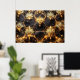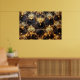 Ein faszinierendes Muster goldener, sternähnlicher geometrischer Formen Set vor tiefkosmischem Hintergrund. Die leuchtenden Linien und die komplexen Designs schaffen eine luxuriöse und futuristische Ästhetik.