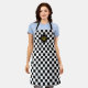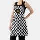 Goldene Krone auf schwarz-weißem Schachmuster Schürze.