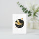 Künstlerisch bemalt, Gold, Schmuck, funkelnde Libelle mit detailreichen filigranen Flügeln auf goldener wilder Blume, gegen schwarz strukturierte Kreis. Goldene Libelle