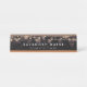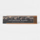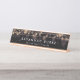 Die elegante Schreibtischnamenplatte in knusprigem Schwarz weist einen oberen Rand aus knusprigen Strängen mit goldenen Saitenleuchten auf, die einen unscharfen Effekt haben. Personalisieren Sie Ihren Namen, Titel oder Firmennamen in modernen weißen Schriften.