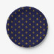 Elegantes, goldfarbenes Lilie-Muster auf dunkelmarineblau-blauem Hintergrund.