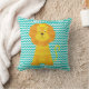 Goldene Löwe auf Aqua Blau und Weiß Zickzack Strei Kissen