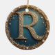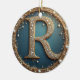 Luxuriöses goldenes Monogramm, verziert mit Perlen, Diamanten und aufwendiger barocker Filigranarbeit in einem kreisförmigen Dekorrahmen; elegantes, königliches und sehr detailliertes Design für Marken oder redaktionelle Verwendung.