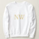 Weiße und goldene Monogramm-Initialen für individualisierbare Frauenpullover. Verwenden Sie "Bearbeiten mithilfe des Designtools", um die Position des Textes anzupassen.