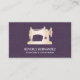 Elegante Visitenkarten für Schneider, Nahtlose, Modedesigner, Stylist und mehr mit einem Imitat Gold Nähmaschine Illustration auf einem Imitat Lila Leinenhintergrund mit zwei Zeilen Text in Weiß. Stellen Sie die Rückseite mit Ihren vollständigen Kontaktdaten ein. Für individuelle Anfragen kontaktieren Sie uns bitte über den Shop oder schreiben Sie unter citronelladesign@gmail.con