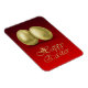 Glamour Abbildung mit 2 goldenen Ostereiern auf rotem Hintergrund.