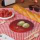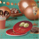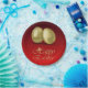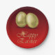 Glamour Abbildung mit 2 goldenen Ostereiern auf rotem Hintergrund.
