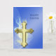Wünschen Sie Ihren Freunden und der Familie die Freude an Ostern. Eine schöne Karte mit einem goldenen Kreuz auf einem blauen Himmel. Dies ist die perfekte religiöse Osterkarte für Christen jeder Glaubensrichtung, während sie die Hoffnung und Freude feiern, die die Auferstehung mit sich bringt.