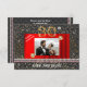 Chic Black and Gold Nummer mit roter Seide dekoriert mit zwei Gold und Pearls & Gold Konfetti auf einem eleganten schwarzen gewebten Muster.