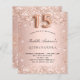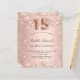 Für eine elegante Quinceañera, 15. Geburtstagsfeier. Eine Rose mit goldenem Farbverlauf. Dekoriert mit Rose Gold Imitate Glitzer Staub. Personalisieren und fügen Sie einen Namen und Party-Details hinzu. Der Name wird mit einem handgeschriebenen Stilskript geschrieben. Nummer 15 wird mit einem Schriftart im Ballonstil geschrieben.