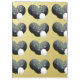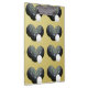 Auf goldgelbem Hintergrund sind schwarze Rasenschüsseln mit Jack