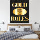 Diese Wandkunst zeigt ein Goldmotiv mit den Worten "Goldene Regeln" in einem goldfarbenen Schriftart plus "Wer die Kontrolle des Goldes" in der Mitte mit schwarzem Buchstaben über goldenem Dekor. Unsere Drucke werden mit der höchsten Auflösung auf dem Baumwolle-Poly-Archivpapier gedruckt, für eine langlebige verblasste Druckgröße von 40,00" x 48,60". Dieser Druck sorgt für die perfekte Ergänzung, um jede Zuhause oder jedes Büro aufzuräumen.