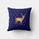 Goldene Rentiere Silhouette & Sterne auf Marinebla Kissen