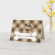 Goldene Retrika mit lustiger Maske auf Knochen Karte