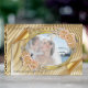 Eine elegante Goldkarte mit glühenden Goldecken und goldenen Creme-Rose für eine schicke Hochzeit oder eine beliebige andere Veranstaltungskarte, um Ihre persönlichen Wünsche zu erfüllen