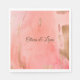 Hübsches Gold, rosa, pfirsichfarbene Servietten mit Namen. Brauner Schriftart. Ideal für Brautparty.