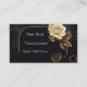 Eine zarte goldene Rose, die auf einem verzierten, schwarzen Etikett zentriert ist, umgeben von goldenen Zierdetails. Das Design besticht durch einen luxuriösen goldenen Hintergrund und einen eleganten Stil.