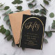 Eine elegante Einladung zum 50. Geburtstag. Ein schwarzer Hintergrund mit einem goldenen Bogen auf der Vorderseite.