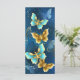Zusammensetzung aus Fliegen, Schmuck, Gold und dunklen Schmetterlingen auf texturiertem Schmuckhintergrund. Goldener Schmetterling.