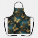 Eine elegante Schürze mit einem Schmetterlingsmuster in glitzernden goldenen Farbtönen und leuchtender Blues.