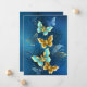 Zusammensetzung aus Fliegen, Schmuck, Gold und dunklen Schmetterlingen auf texturiertem Schmuckhintergrund. Goldener Schmetterling.