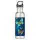 Goldene Schmetterlinge auf blauem Hintergrund Edelstahlflasche