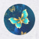 Goldene Schmetterlinge auf blauem Hintergrund Etiketten