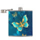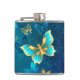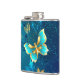 Goldene Schmetterlinge auf blauem Hintergrund Flachmann