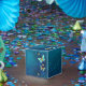 Goldene Schmetterlinge auf blauem Hintergrund Geschenkschachtel