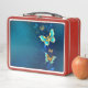 Goldene Schmetterlinge auf blauem Hintergrund Metall Brotdose