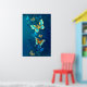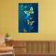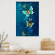 Goldene Schmetterlinge auf blauem Hintergrund Poster