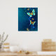 Goldene Schmetterlinge auf blauem Hintergrund Poster