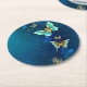 Goldene Schmetterlinge auf blauem Hintergrund Runder Pappuntersetzer