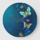 Goldene Schmetterlinge auf einem blauen Hintergrun Große Wanduhr