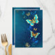 Goldene Schmetterlinge auf einem blauen Hintergrun Menükarte