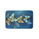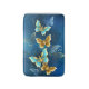 Zusammensetzung aus Fliegen, Schmuck, Gold und dunklen Schmetterlingen auf texturiertem Schmuckhintergrund. Goldener Schmetterling.