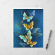 Zusammensetzung aus Fliegen, Schmuck, Gold und dunklen Schmetterlingen auf texturiertem Schmuckhintergrund. Goldener Schmetterling.