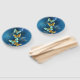 Zusammensetzung aus Fliegen, Schmuck, Gold und dunklen Schmetterlingen auf texturiertem Schmuckhintergrund. Goldener Schmetterling.