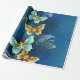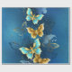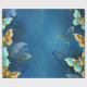 Zusammensetzung aus Fliegen, Schmuck, Gold und dunklen Schmetterlingen auf texturiertem Schmuckhintergrund. Goldener Schmetterling.