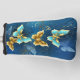 Zusammensetzung aus Fliegen, Schmuck, Gold und dunklen Schmetterlingen auf texturiertem Schmuckhintergrund. Goldener Schmetterling.