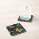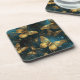 Ein eleganter harter Kunststoff-Untersetzer mit einem Schmetterlingsmuster in glitzernden goldenen Farbtönen und leuchtender Blues.