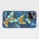Zusammensetzung aus Fliegen, Schmuck, Gold und dunklen Schmetterlingen auf texturiertem Schmuckhintergrund. Goldener Schmetterling.