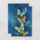 Zusammensetzung aus Fliegen, Schmuck, Gold und dunklen Schmetterlingen auf texturiertem Schmuckhintergrund. Goldener Schmetterling.