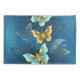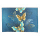 Zusammensetzung aus Fliegen, Schmuck, Gold und dunklen Schmetterlingen auf texturiertem Schmuckhintergrund. Goldener Schmetterling.