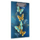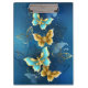 Zusammensetzung aus Fliegen, Schmuck, Gold und dunklen Schmetterlingen auf texturiertem Schmuckhintergrund. Goldener Schmetterling.