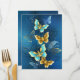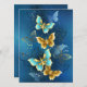 Zusammensetzung aus Fliegen, Schmuck, Gold und dunklen Schmetterlingen auf texturiertem Schmuckhintergrund. Goldener Schmetterling.