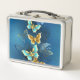 Zusammensetzung aus Fliegen, Schmuck, Gold und dunklen Schmetterlingen auf texturiertem Schmuckhintergrund. Goldener Schmetterling.