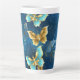 Zusammensetzung aus Fliegen, Schmuck, Gold und dunklen Schmetterlingen auf texturiertem Schmuckhintergrund. Goldener Schmetterling.